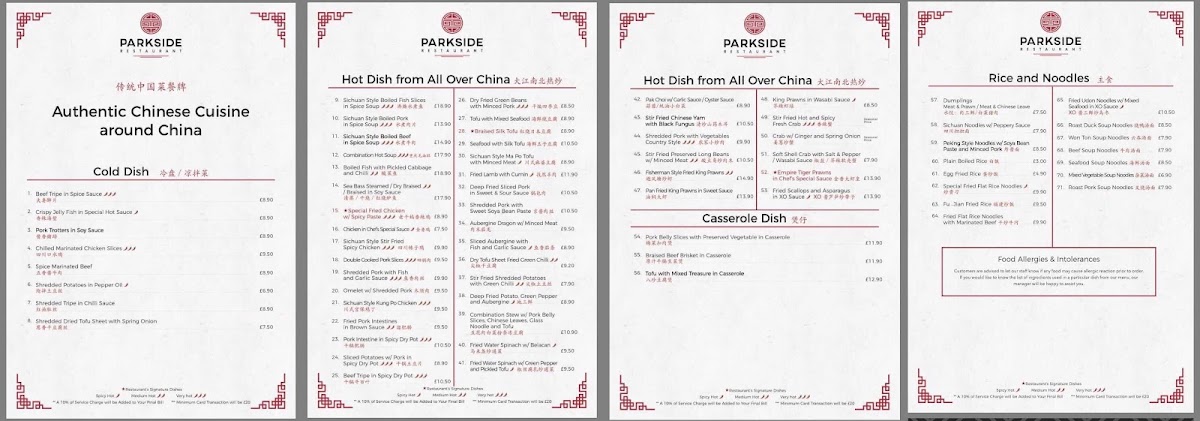 Parkside Restaurant Menu