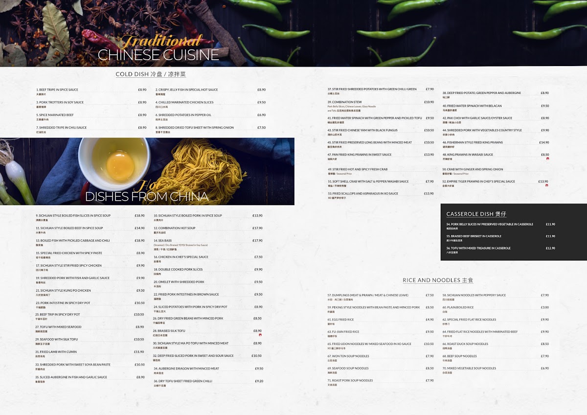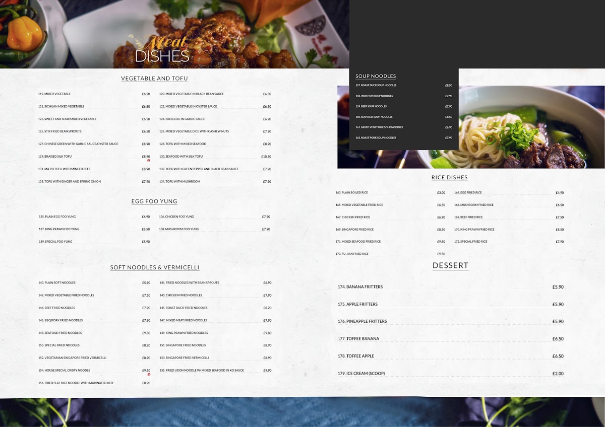 Guests often enjoy these dishes during casual lunches, relaxed dinners, or as a convenient takeaway option after a busy day. The presence of warming soups, hearty casseroles, and signature dishes like pork belly with preserved vegetables invites a sense of comfort, while offerings like tempura and lemon chicken provide lighter, flavorful moments.